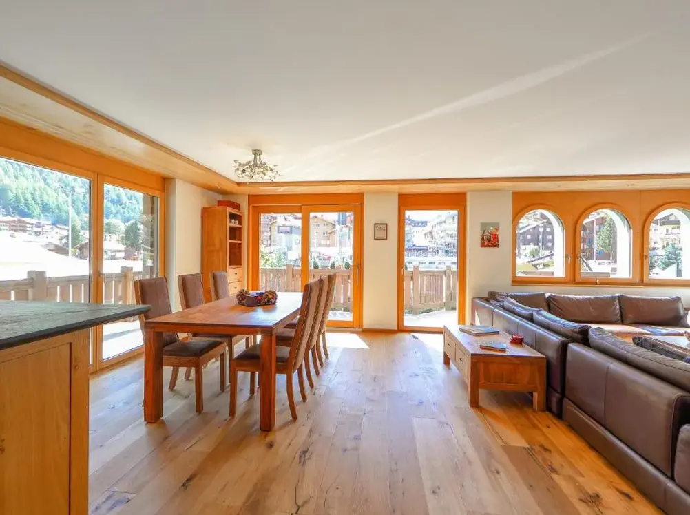 luxurious property in excellent location can highly recommend! in the middle of the centre, steps away from shops and restaurants. easy walk to 2/3 lifts. 15 min walk to the other lift, which is a short cut if you want to make it to the Italian side. apartment is great with an amazing view of the Matterhorn. very well stocked kitchen, comfy beds, great heating, smart tv and even got a wine fridge. property has pool and sauna on site.